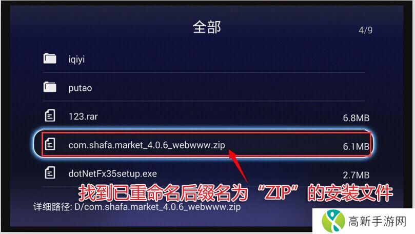 将下载好的apk安装包复制到U盘。2.更改文件后缀名由“apk”为“zip”;如图