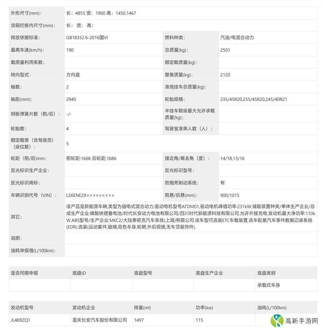 增程版车型则采用了不同的动力策略,总质量为2501kg,整备质量为2120kg,搭载了由重庆长安汽车股份有限公司提供的1.5T增程器,功率为115kW。同时,该版本还配备了231kW的驱动电机,虽然最高车速略低,为190km/h,但增程技术的加入无疑将大大提升其续航能力。