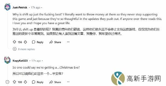 有玩家直言想给开发商ShiftUP充钱:“为什么Shift Up是最好的呢?我真想给他们砸钱,这样他们就永远不会停止支持这款游戏。”