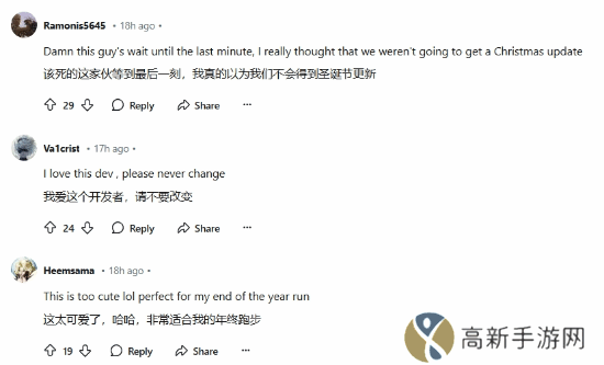 还有网友表示:“该死的,这家伙非等到最后一刻,我真的以为我们不会收到圣诞更新了。”