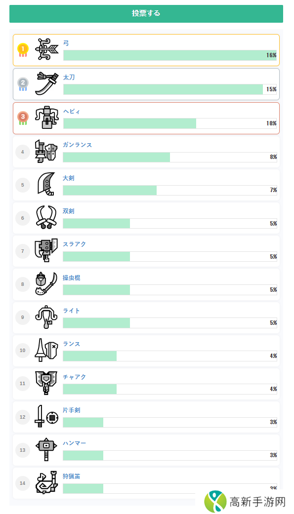 《怪物猎人:荒野》公测玩家武器选取率公布 弓箭第一
