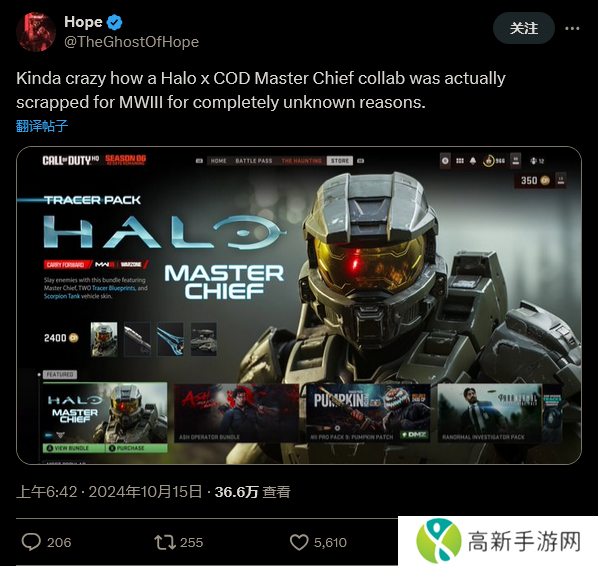 《使命召唤:现代战争3》x《光环》士官长主题联动被取消
