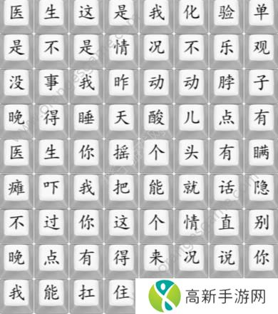 汉字找茬王连出印度医生歌曲需要我们在短短的100秒的时间内将这首印度医生神曲连成线,只有正确的歌词,我们才能更方便的通关,下面来看看连印度歌曲的正确连线图答案吧!汉字找茬王连出印度医生歌曲答案医生这是