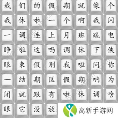 汉字找茬王我们的假期是一首关于假期综合症患者的歌曲,短短的假期总是那么短,迎来的又是一段调休后的超长时间连续工作日,那么这样一首好听的假期歌我们应该如何连线呢,接下来说让我们一起来看看正确的连线图吧!