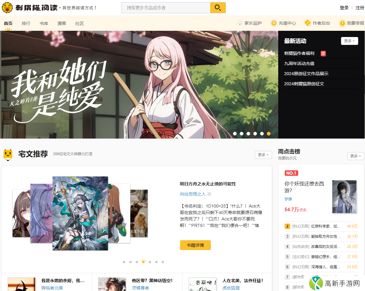 刺猬猫是国内一个同人二次元为主的小说网站。这是更适合二次元爱好者的阅读平台,其中包含了小生活漫画,社区等功能板块,用户也可以在该平台上注册成为作者,发布自己的作品。本文为用户提供的是刺猬猫小说的官网地