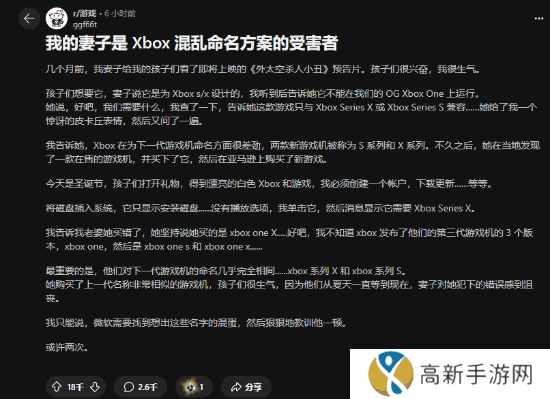 近日,一位国外玩家分享了他因Xbox主机混乱的命名方式而造成的不愉快购物经历,引发了网友们的热议和共鸣。这位玩家讲述了妻子在圣诞节前夕为孩子购买礼物的经历。他家里的孩子非常期待《外太空杀人小丑》这款