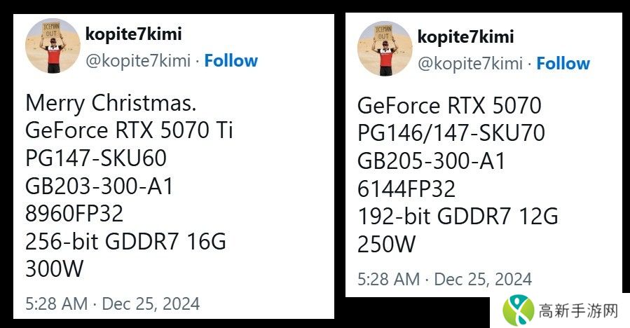 RTX5070 Ti完整规格曝光!RTX5070维持12GB显存