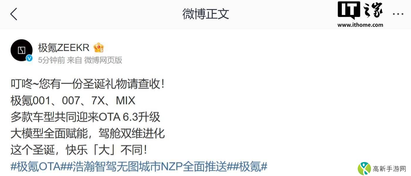 极氪多款车型OTA 6 3升级,浩瀚智驾2 0与AI出行新体验来袭!