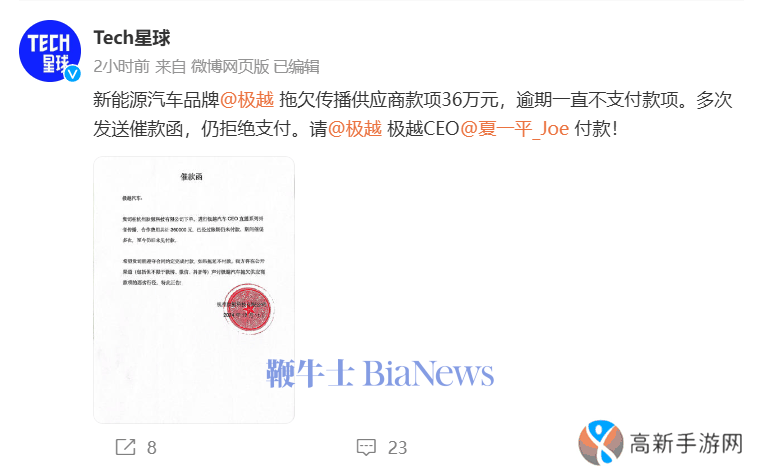 极越汽车被指拖欠36万款项,夏一平何时能还清?