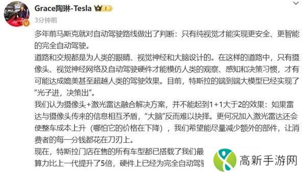 特斯拉力挺纯视觉自动驾驶,陶琳:激光雷达并非最优解?