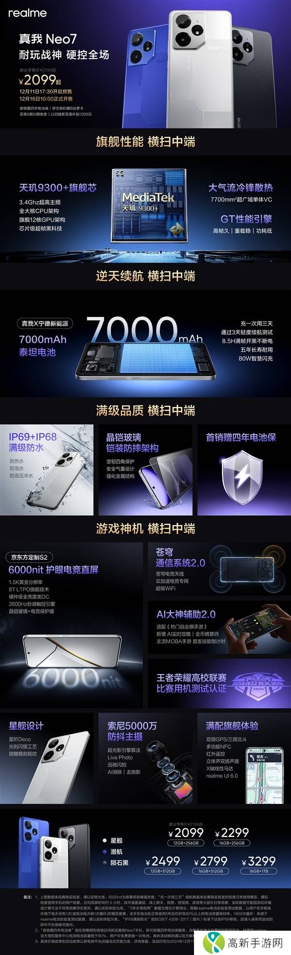 真我Neo7首发天玑9300+,2099元起售,续航王者还是质价比新标杆?