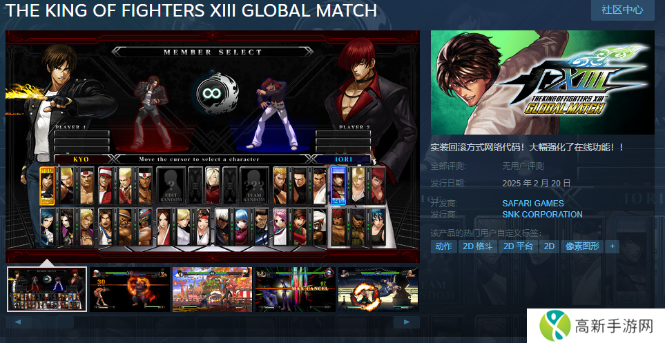 《拳皇 XIII 全球对战版》Steam页面上线 2月20日发售