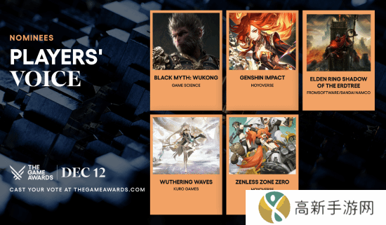 TGA“玩家之声”奖提名揭晓:悟空、原神等五款大作谁能登顶?