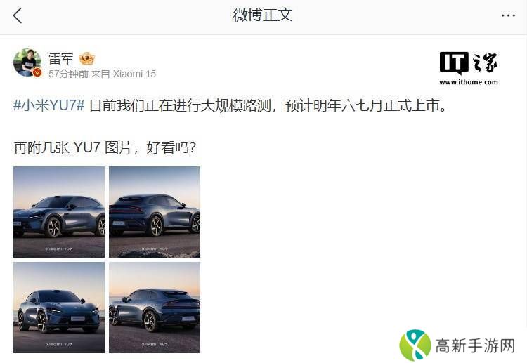 小米YU7 SUV路测中,雷军透露明年六七月上市计划