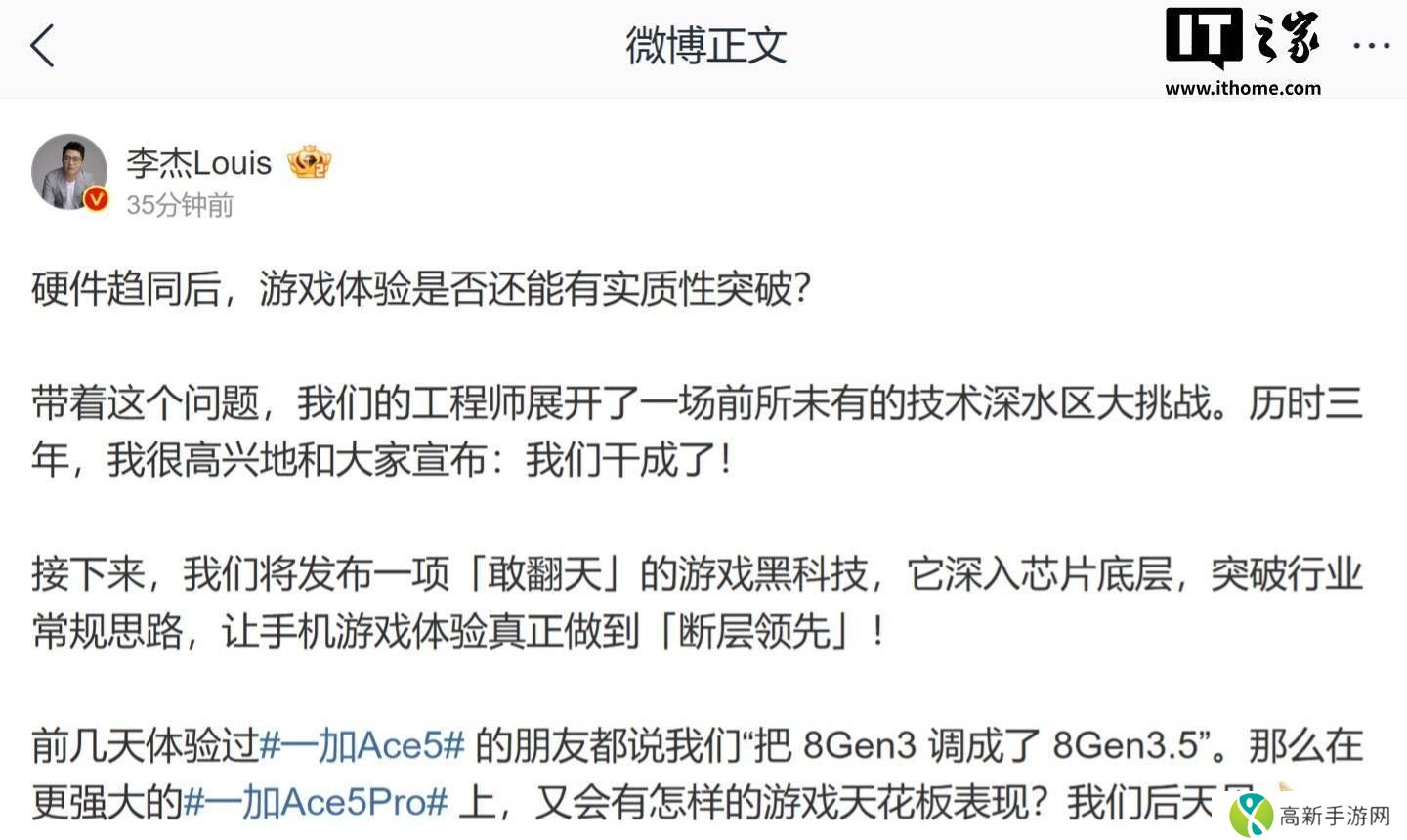 一加游戏大会12日来袭,李杰揭秘“敢翻天”游戏黑科技将如何颠覆体验?