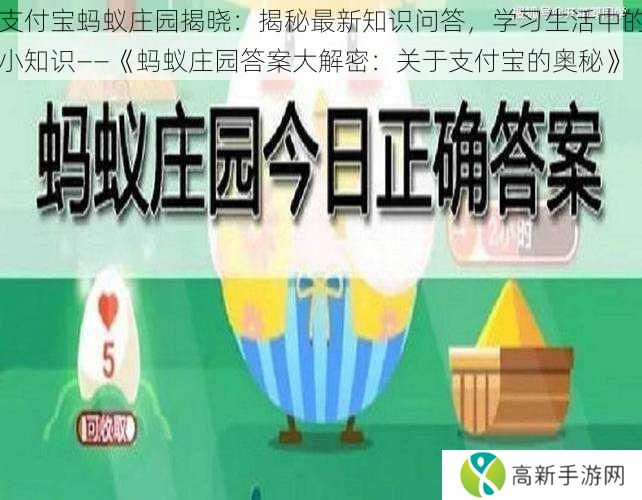 支付宝,作为款便捷的手机支付应用,除了为我们提供快速安全的支付服务外,还隐藏着许多有趣且富有教育意义的小知识。其中的蚂蚁庄园,通过趣味盎然的知识问答,不仅提升了用户的参与度,还让人们在游戏中学习到了许