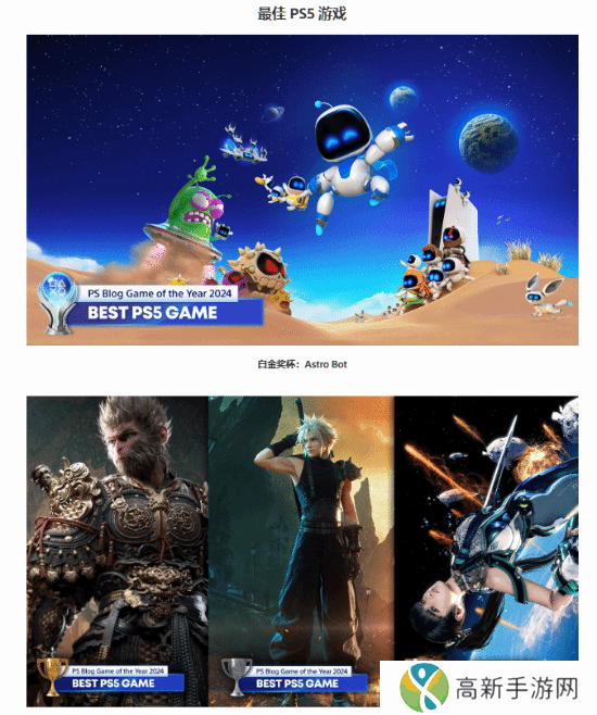 早些时候我们曾报道,2024年PS Blog年度大奖现已正式公布,“年度最佳PS5游戏”的白金奖杯由《宇宙机器人》获得。国产3A《黑神话:悟空》拿下“最佳视觉呈现奖”白金奖杯,并获得“年度最佳PS5