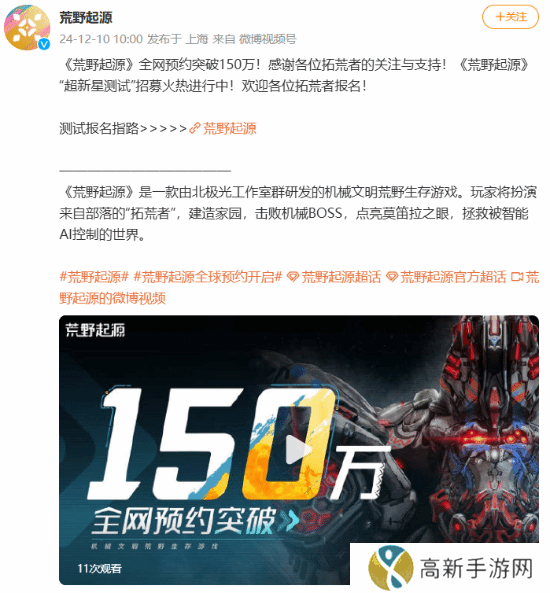 腾讯《荒野起源》机械巨兽风靡,全网预约破150万,预告片首发引期待!
