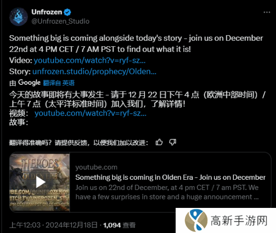 开发商Unfrozen今日宣布,将于北京时间12月22日23:00将公开新作《魔法门之英雄无敌:上古纪元》的重大消息。《魔法门之英雄无敌:上古纪元》是本系列的新作,故事发生在贾达密大陆的恩洛斯。玩家