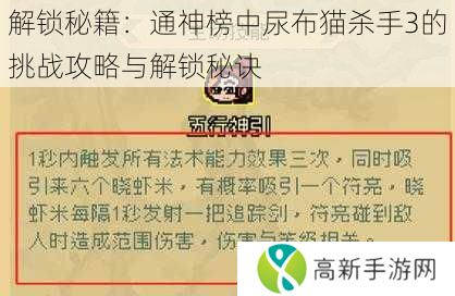 作为款冒险动作类游戏,通神榜中的尿布猫杀手3挑战是众多玩家们的热门话题。如何顺利过关斩将,解锁秘籍成为玩家们关注的重点。本文将为大家分享些实用的攻略与解锁秘诀,帮助大家轻松应对尿布猫杀手3的挑战。角色