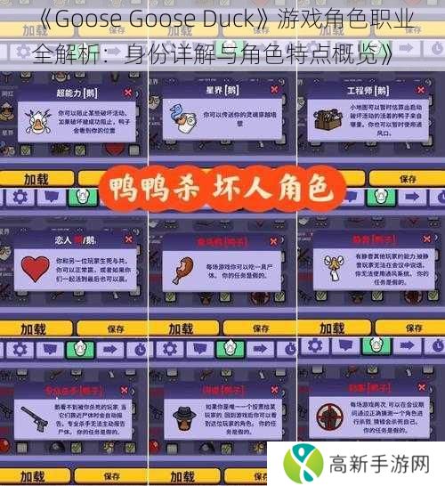 《Goose Goose Duck》游戏角色职业全解析:身份详解与角色特点概览随着网络游戏的飞速发展,各种游戏类型层出不穷,其中休闲益智类游戏因其轻松愉快的游玩体验和简单易懂的游戏规则,深受广大玩家喜