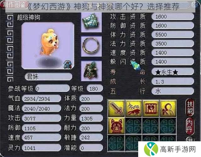 在《梦幻西游》这款游戏中,神狗和神猴是两个极为引人注目的角色。两者都有其独特的特色和优势,使得玩家在选择时可能会感到困惑。本文将结合游戏内的实事信息,对神狗和神猴的各方面能力进行详细对比,帮助玩家做出