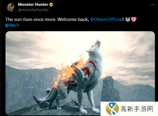 今日,《怪物猎人》官方推特发文庆祝《大神》新作回归:“太阳再次升起。欢迎回来,大神”,配图则是《怪猎崛起》牙猎犬联动皮肤。《大神》新作于TGA颁奖典礼首次公开,神谷英树重组四叶草工作室领导本作开