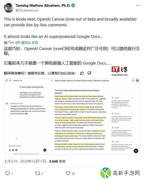 OpenAI Canvas上线:ChatGPT写作编码效率倍增,还能执行代码!