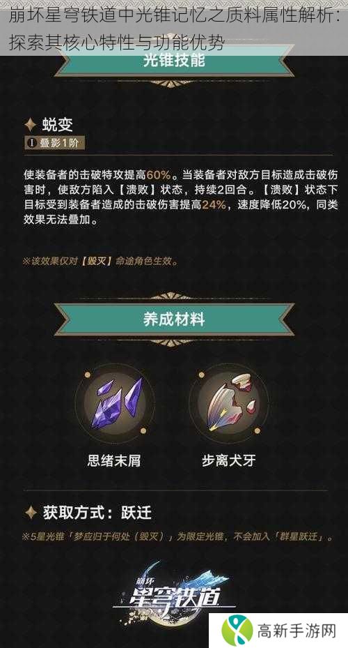 在崩坏星穹铁道中,光锥记忆之质料属性是探索游戏内物品和角色属性的重要内容。本文将从游戏内物品和角色属性的角度出发,对光锥记忆之质料属性进行详细的解析,帮助大家更好地了解这属性在游戏中的作用和优势。光锥