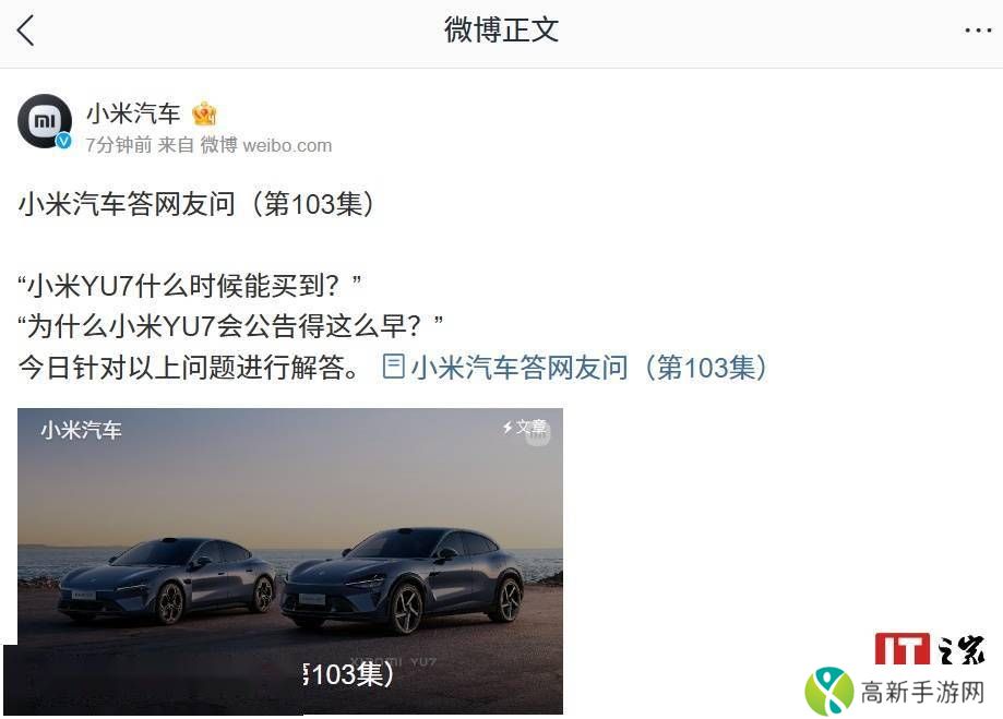 小米汽车YU7提前亮相,只为更全面道路测试,何时能入手?