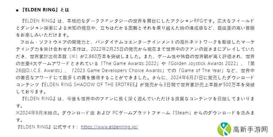 《艾尔登法环》总销量突破2860万份 每月销量达百万
