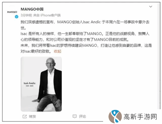 据外媒报道,当地时间12月14日,西班牙快时尚连锁品牌MANGO创办人、亿万富翁伊萨克·安迪克到巴塞罗那一处山区郊游,不料行经一处约150米深的山谷时不慎失足滑倒,从悬崖坠落身亡。不