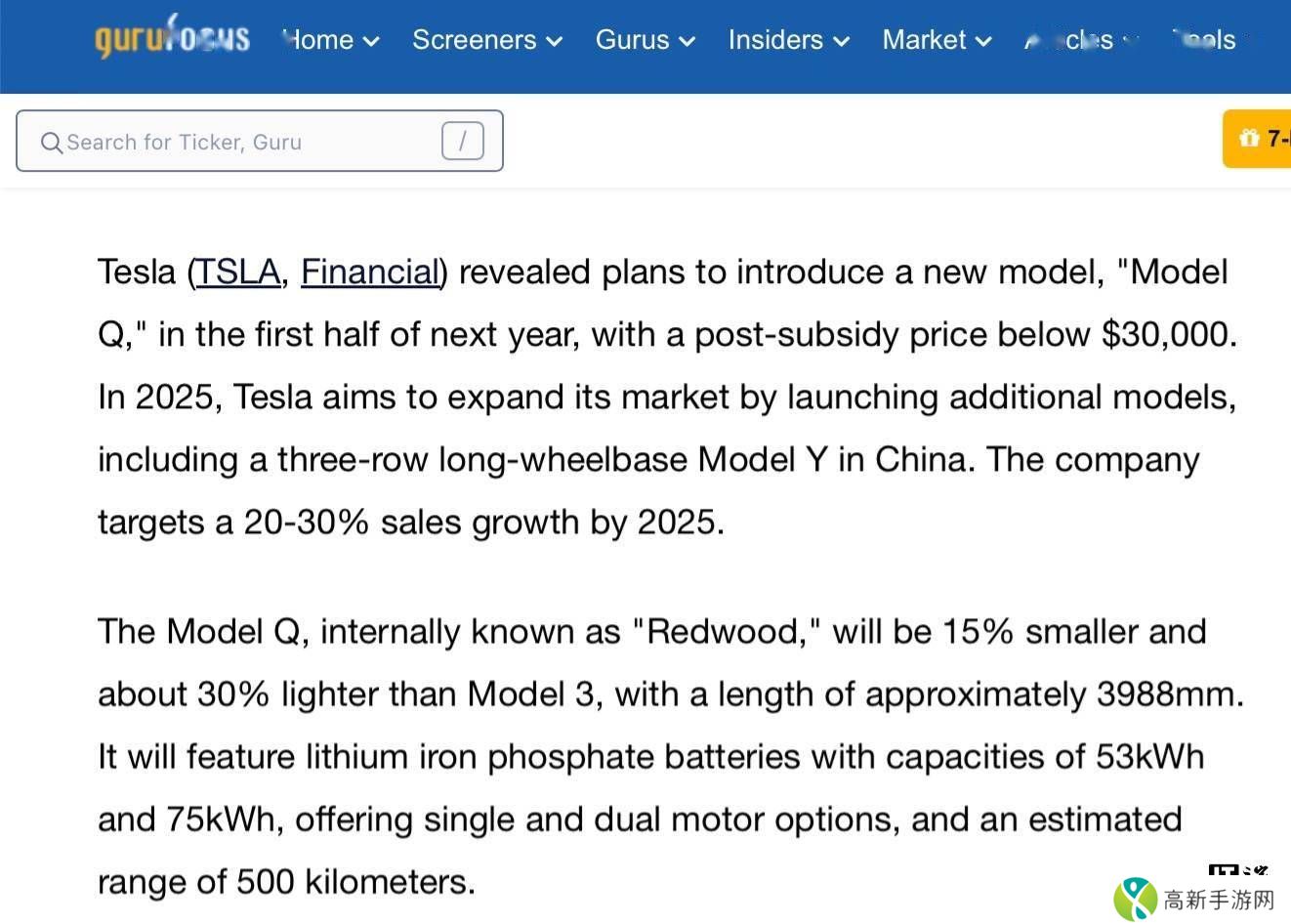 特斯拉明年上半年将推入门新车Model Q,补贴后北美售价不到22万