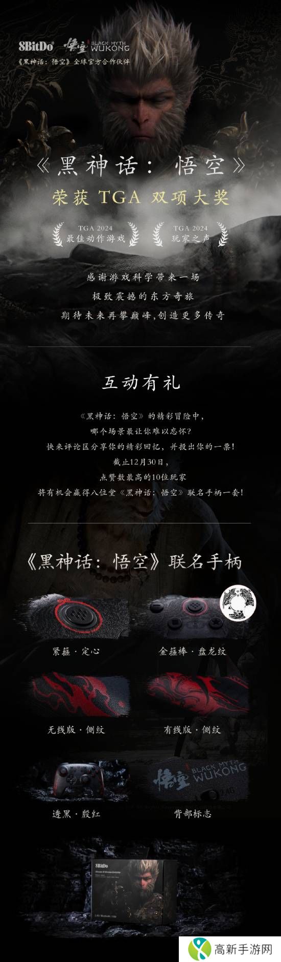 TGA 2024颁奖典礼现已正式结束,国产3A大作《黑神话:悟空》获得了“最佳动作游戏”和“玩家之声”两项奖项,八位堂科技官方在微博发文,表示为了祝贺《黑神话:悟空》荣获TGA双项大奖,将免费抽送联
