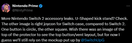 日前,推主@NintyPrime分享了据称是任天堂Switch 2手柄保护壳配件的图片。图中主要展示的是初代右手柄保护壳(上)和NS2右手柄保护壳(下),似乎新机的保护壳要比初代略大,且右下角多了一