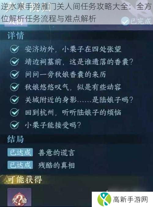 随着逆水寒手游的火爆,越来越多的玩家开始关注游戏中的雁门关人间任务。这个任务流程相对复杂,需要玩家进行全方位的解析和难点攻克。本文将从任务流程难点解析和解决方法等方面进行详细阐述,帮助玩家更好地完成这