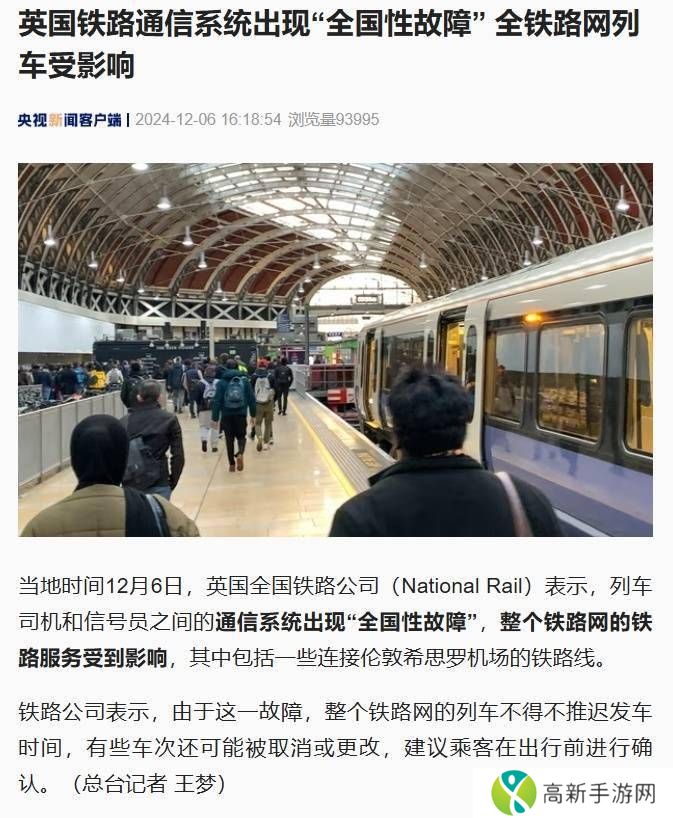英国铁路通信系统全国性故障,全路网列车服务受影响