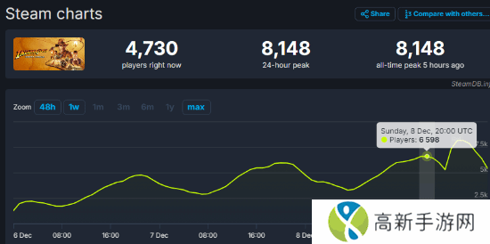 MachineGames最新动作冒险游戏《夺宝奇兵:古老之圈》今日正式发售。据Steamdb数据显示,截止发稿,本作同时在线人数峰值已达到8148人,较抢先体验阶段增长了近2千人,预计该数字还将继续