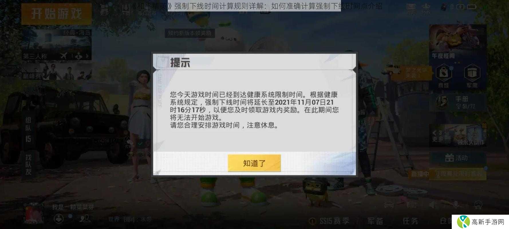 《和平精英》是款备受玩家喜爱的射击游戏,而游戏中的强制下线时间计算规则则是让众多玩家头疼的。我们将详细介绍《和平精英》强制下线时间的计算规则,并告诉大家如何准确计算强制下线时间点。《和平精英》强制下线