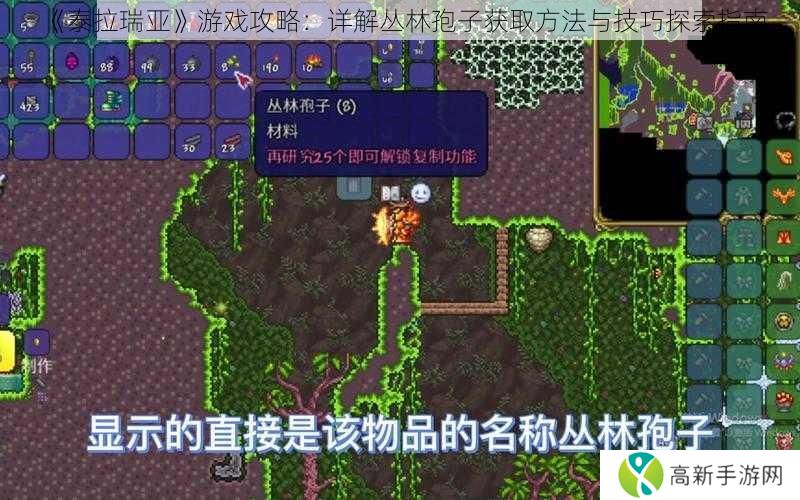 在《泰拉瑞亚》这款游戏中,丛林孢子是种非常重要的资源,用于制作各种药剂和合成材料。获取丛林孢子需要定的技巧和耐心,下面是些详细的获取方法和技巧,帮助你在游戏中更好地探索丛林孢子。了解丛林孢子的基本属性