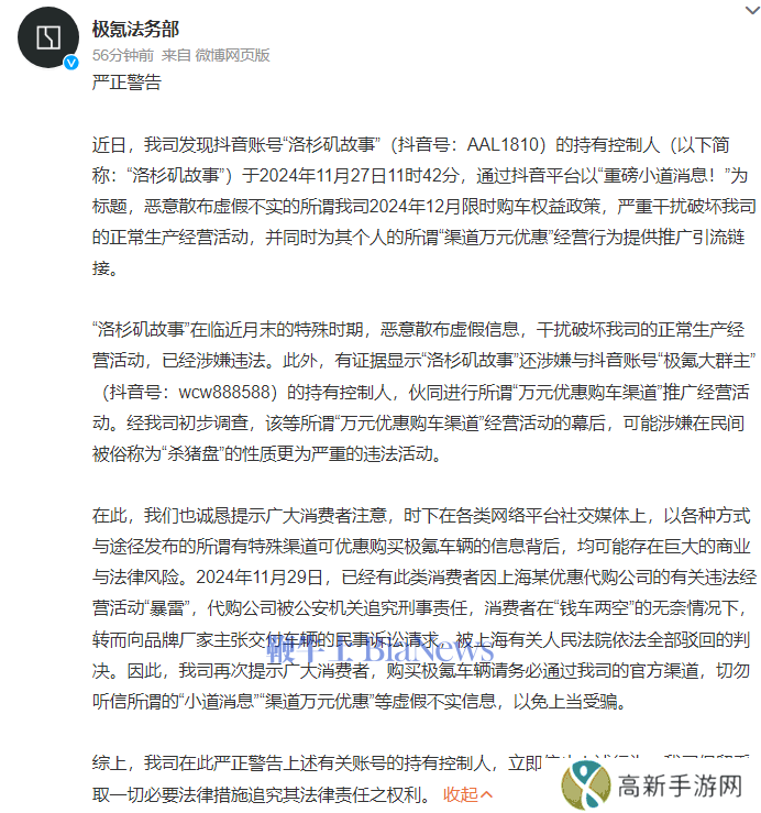 极氪汽车发声明:抖音用户“洛杉矶故事”散布虚假购车政策遭谴责