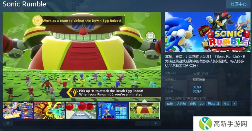 派对游戏《Sonic Rumble》Steam页面上线 冬季推出