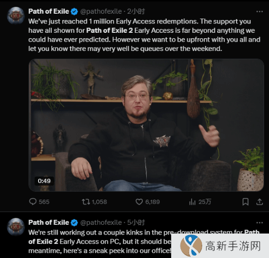 动作角色扮演游戏《流放之路2》抢先体验版即将于12月7日上线,开发商Grinding Gear Games游戏总监乔纳森·罗杰斯宣布,抢先体验版资格兑换次数已达到100万次,这意味着游戏上线后将有大