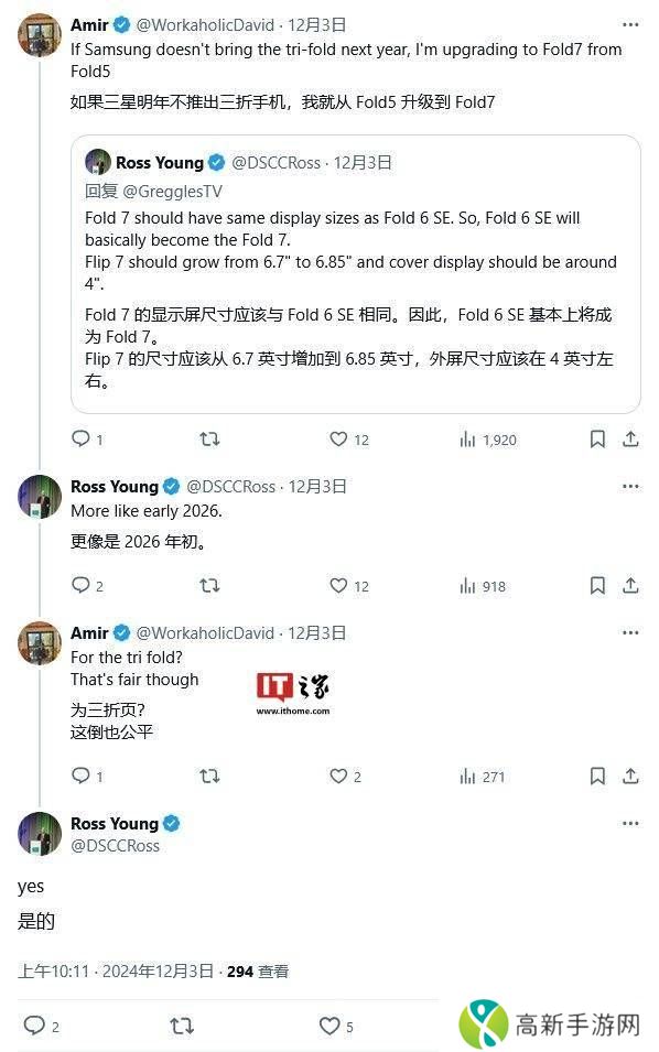 三星三折叠手机新动向:2026年面世,双折设计展开达10英寸?