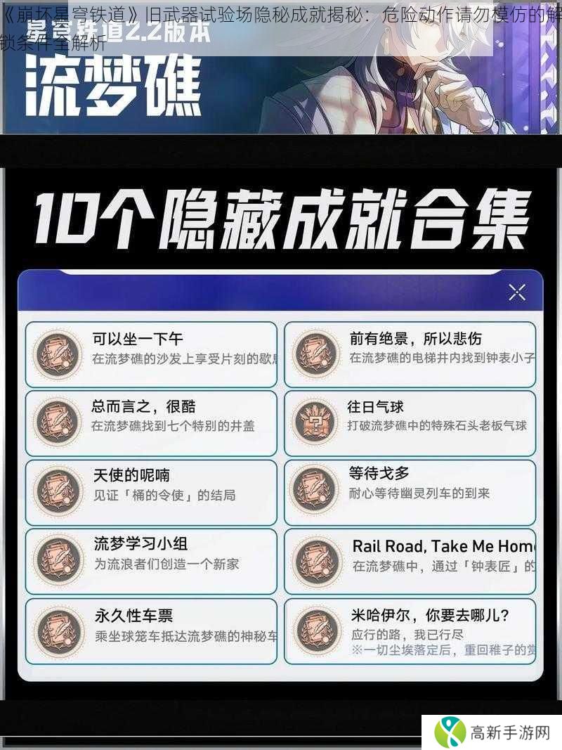 在《崩坏星穹铁道》游戏中,旧武器试验场是个充满挑战和机遇的地方。在这里,玩家可以体验到刺激的战斗和丰富的剧情。而其中个隐秘成就“危险动作请勿模仿”更是引起了众多玩家的兴趣。本文将对这成就的解锁条件进行