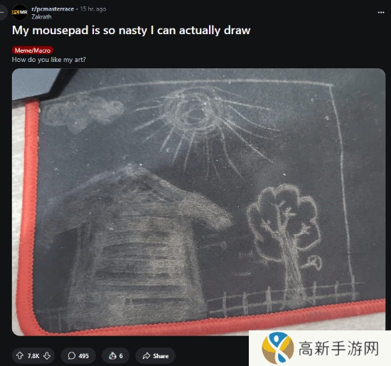 不知道大家是否都有过类似的经历:长时间不清理的鼠标垫,因积累了灰尘和汗渍,轻轻用手指一划就会留下明显的痕迹。尤其是在深色的鼠标垫上,这些痕迹往往更加显眼。日前,一位玩家就在自己得包浆鼠标垫上划出了一