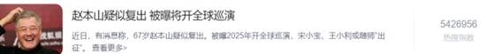 近日,据媒体报道,“赵本山疑似复出 被曝将开全球巡演”登上热搜,引起网友热议。据海报显示,赵本山计划在2025年策划一场全球巡演,届时他将带领众喜剧演员一同演出,时间从 2025 年