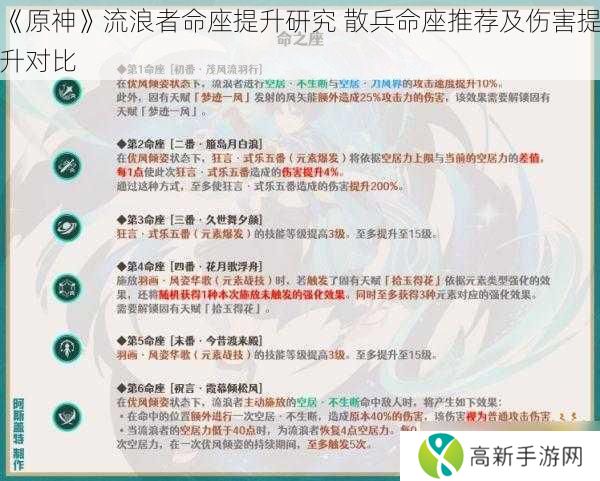 在《原神》这款游戏中,流浪者(散兵)作为位具有高机动性和爆发性输出的角色,其命座提升对于整体伤害和战斗表现有着显著的影响。本文将对流浪者的命座推荐及伤害提升进行对比分析,帮助玩家更好地理解和选择适合的
