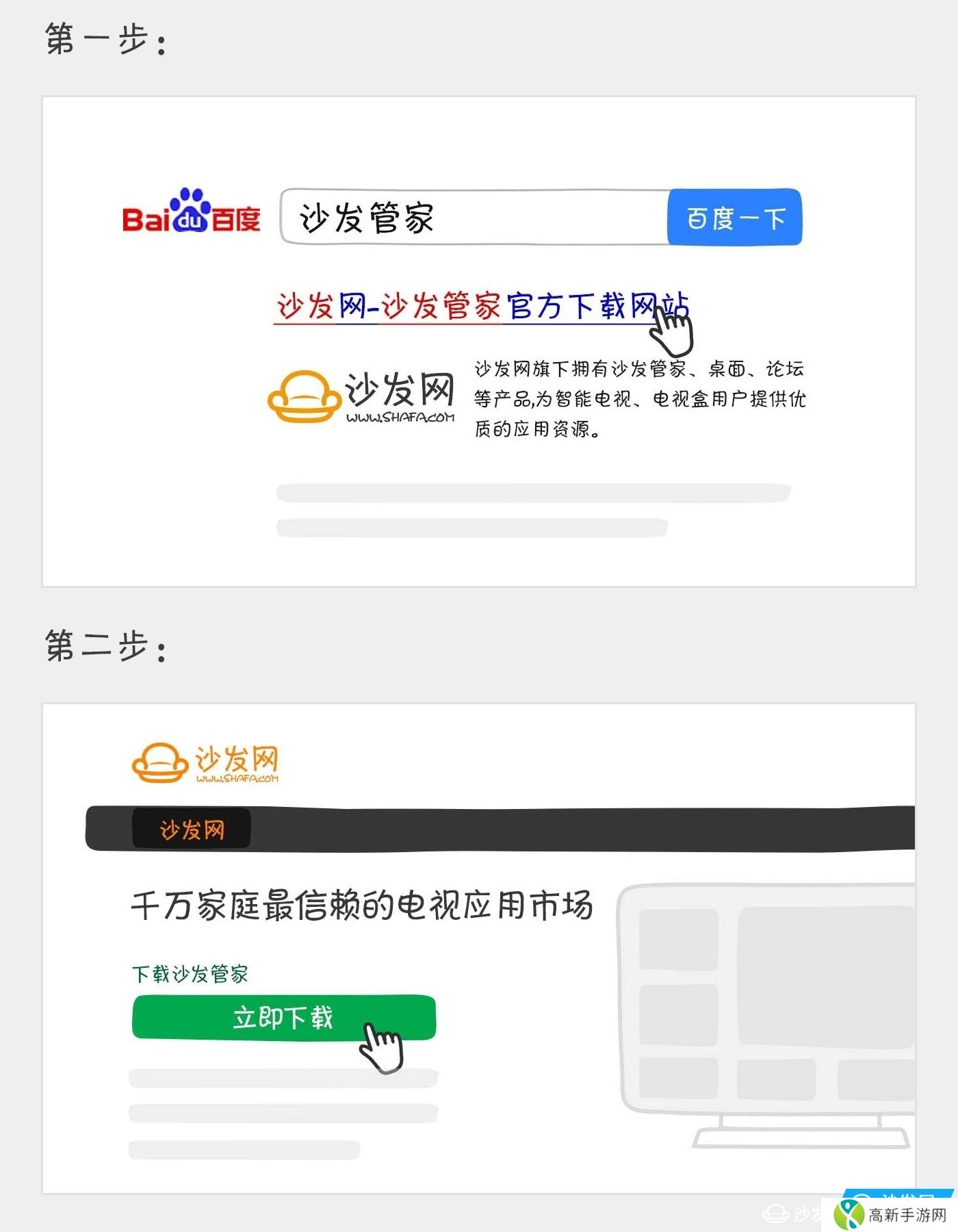 本教程适用于索尼KD-55A1电视,索尼电视其他型号亦可参考本教程。【安装流程】①下载沙发管家安装文件到U盘→②U盘连接索尼KD-55A1→③本地播放打开安装文件→④安装成功【操作步骤】1 百度搜索